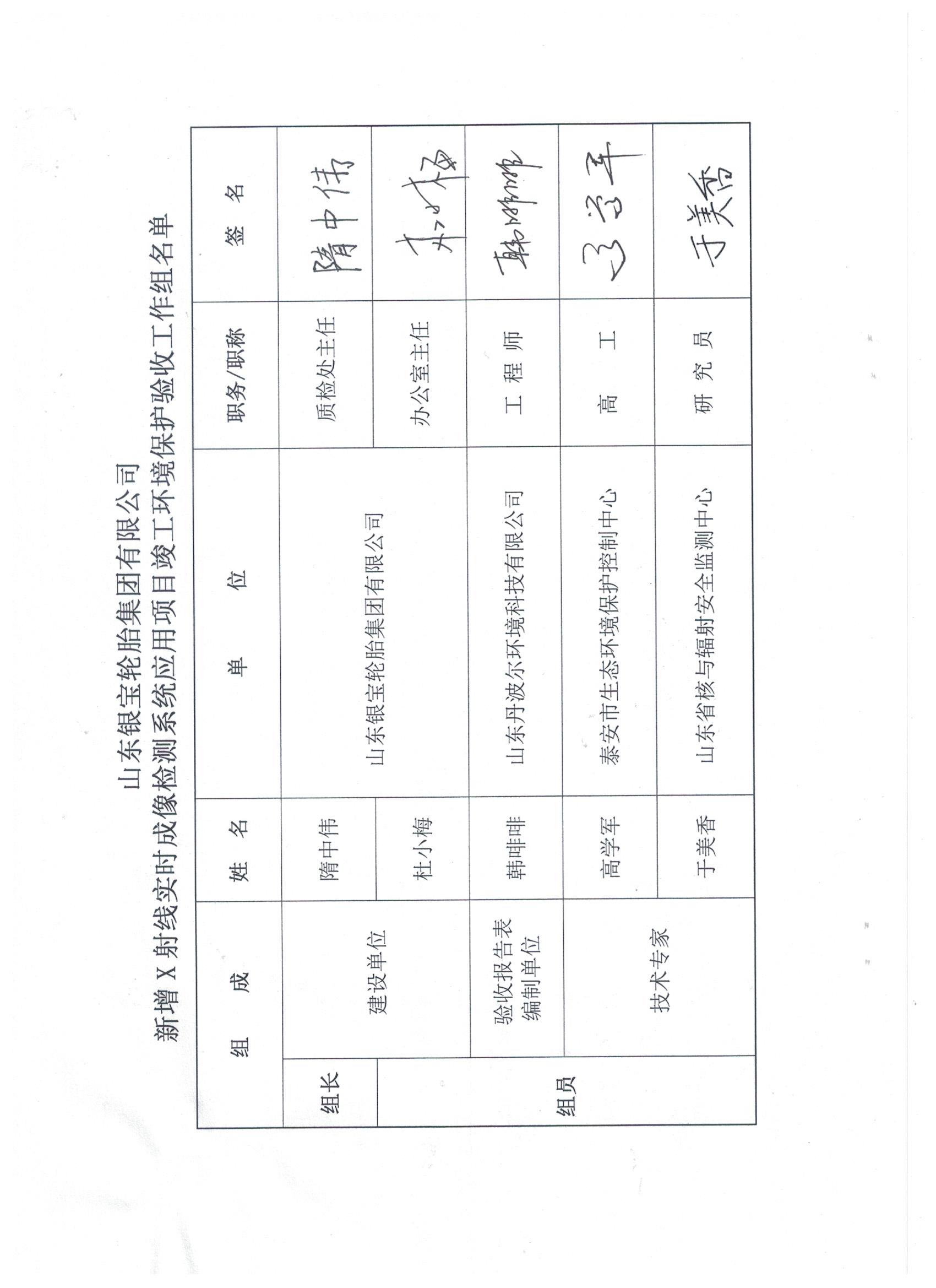 项目名称:山东银宝轮胎集团有限公司新增X射线实时成像检测系统应用项目竣工环境保护验收监测报告表